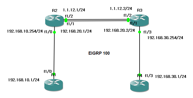 EIGRP 설정, 192.168.10.1 에서 192.168.30.1 로 Ping을 날릴 때 192.168.20.2로 가도록 설정하겠습니다.